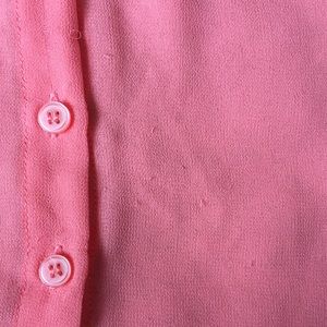 Ladies sheer blouse with 3/4 sleeves. Some very minor hitching near the bottom by the buttons but itβs hardly noticeable (see last photo). Beautiful salmon/coral colour.