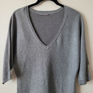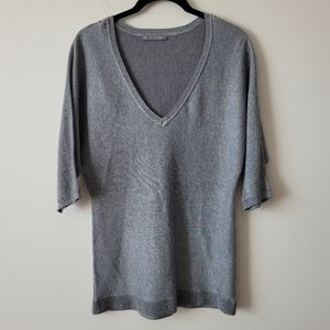 Smart Set Silver Grey Metallic Knit V Neck Top Size S