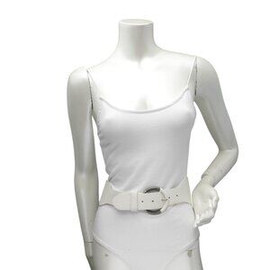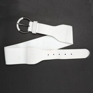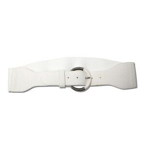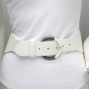 Smart Set Wide Faux Leather Elastic Cinch Belt White Silver Stretch Adjustable