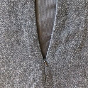 Midi dress, made of 70% wool and 30% polyester. Jewel neckline, lace trim on the hem. Invisible zipper up the back.