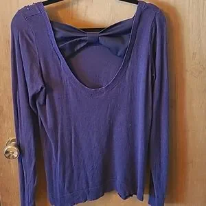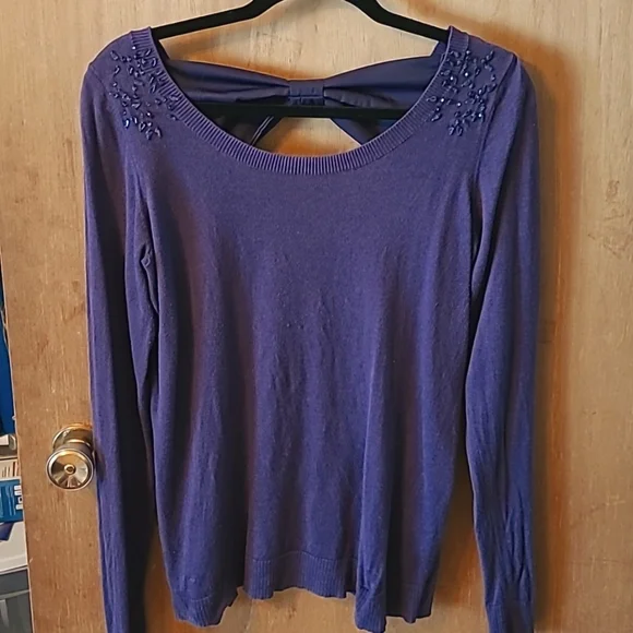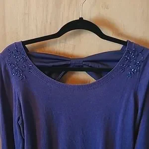 Soft long sleeved top. Make a statement coming and going with embellishments on the front shoulder and a satin bow across the back!