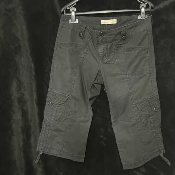 Pants with a a lot of buckets, and Tape to shorten trousers from the side