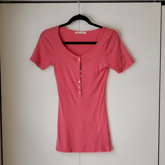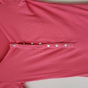Stylish and comfortable pink button-up top for women. Perfect for casual outings or a day at the office.