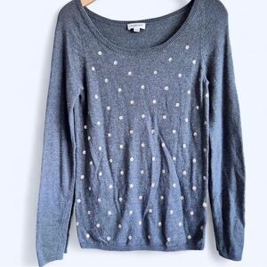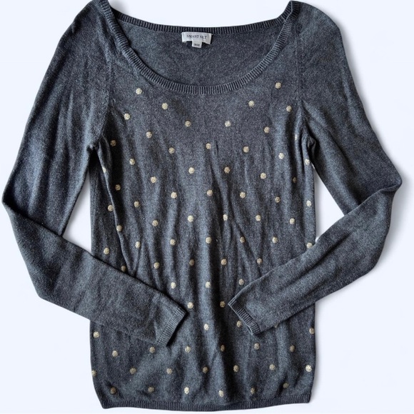 Smartset Womens Grey Gold Polka Dot Soft Cozy Scoop Neck Knit Sweater XS