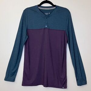 Smartwool Wool Blend Colorblock Long Sleeve Henley Shirt - Men's Size S - Green Purple