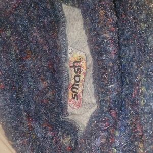 Stylish sleeveless dress featuring a vibrant colorful abstract pattern. Fuzzy knit turtleneck style collar with 2 side pockets. 95%polyester 5%spandex