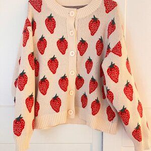 The cutest and most gorgeous knit, button up cardigan in a SOLD OUT custom strawberry print.