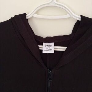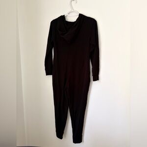 Chic and versatile black jumpsuit. Features a comfortable fit with a front zipper. Ideal for casual outings.