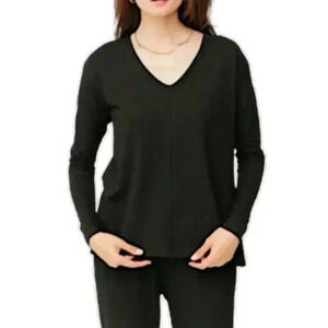 Smash + Tess Perfect V Long Sleeve Top Midnight Black Bamboo Women's size Small