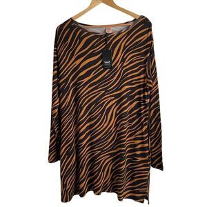 NWT and in perfect condition. Smash + Tess Sweater Weather dress in Teresa Tiger. Long sleeve with a crewneck and midi length. This dress has side pockets and is a loose fit. 65% rayon, 19% cotton, 14% modal, 2% spandex. Made in Canada. Flat lay measurements:33" length, 21" pit to pit.