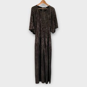 Smash + Tess Black Silver Metallic Tasia Wide Leg Pleated Jumpsuit Sz 2XL