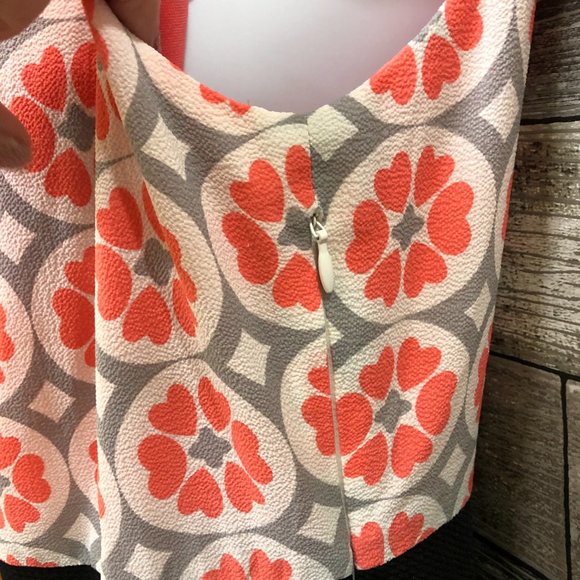 Smashed Lemon Coral Pink Heart Black Polyester Chiffon Zip Side Dress Size 12