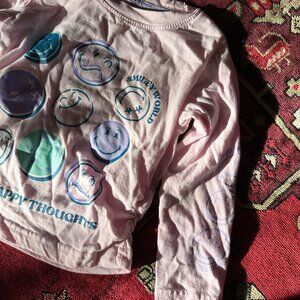 Toddler Girls licensed SmileyWorld® T shirt. This comfortable style has long sleeves and a crew neckline. It also has a front and sleeve graphic print. This pullover style works well paired with jeans or joggers anytime of the year.