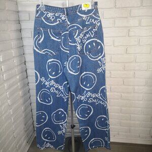 Smiley x H&M Ladies Size 10 Medium Wash w/ White Wide Straight Leg Jeans