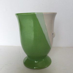 Smiling Funny Face Coffee Mug 3D Protruding Nose White Green Ceramic 8 oz