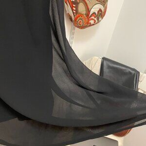 This midi dress displays a black double layered chiffon skirt with a smocked waist into thick fully adjustable tie straps. This adaptable dress allows you to go from strapless, halter to double straps. Or maybe you just want to it as a skirt, just fold down the top and boom a classy skirt. This dress is in excellent condition and I got it from a little shop in Revelstoke.