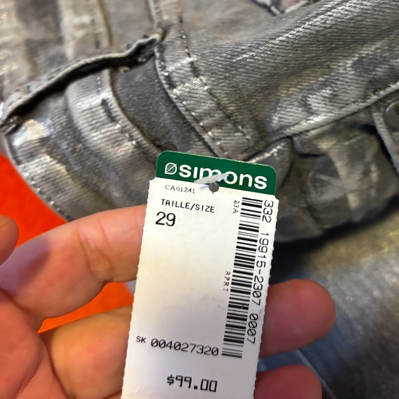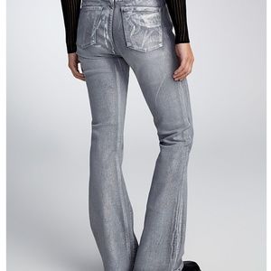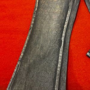Smoke Rise Red metallic gray silver bootcut jeans new with tags. Stretch structured denim made of 92% cotton, 6% polyester and 2% elastane, 5-pocket design, low rise, slim flare curvy fit. These jeans are very flattering, sexy and gorgeous in person, pics don’t do them justice, strong mob wife vibe. Marked size 29. All measurements are approximate and taken with the garment laying flat: Waist 14.5" (there is lot of stretch as well) Front rise 9" Inseam 32" This item comes from a smoke free, pets friendly home. Recycled bags/box used when possible. Please, let me know if you'd like any additional info. Thanks for watching!