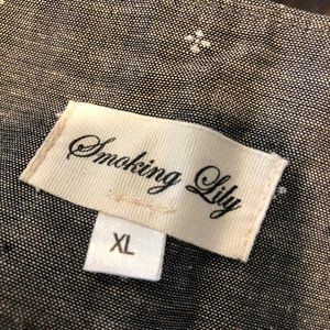 Smoking Lily A-Line Pleated Skirt, grey chambray fabric, very gently worn