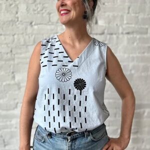 Black Linen blend (some rayon and a little lycra for stretch/comfort) Sleeveless V-Neck Top.