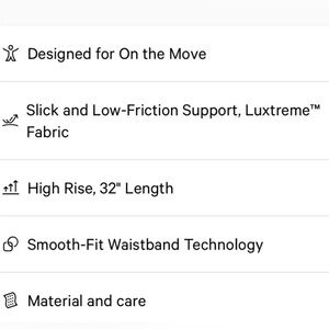 LuluLemon smooth front, high rise, pull on "trouser" pant.