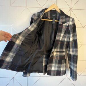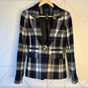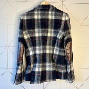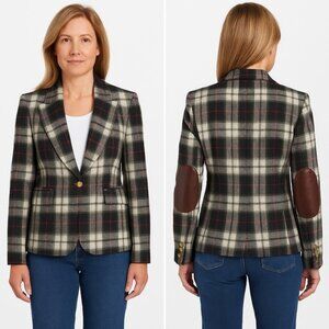 Smythe Hutton 100% Wool Plaid Leather Elbow Patch Blazer