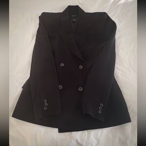Chic Smythe blazer. Lightweight. Cupro. Black. Size 8. First photo reflects a similar style. A great addition to any wardrobe. Approximate measurements in inches as follows: pit to pit 19; length from back of neck 26.5; shoulder to shoulder 16; sleeve 24.5. Worn once.