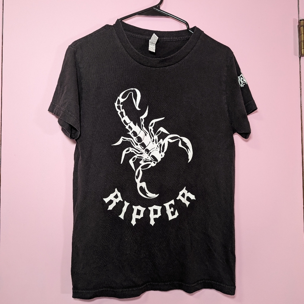 Snak The Ripper rapper T-shirt with scorpion graphic size men's Small has some graphic cracking and two small pin holes as seen in photos