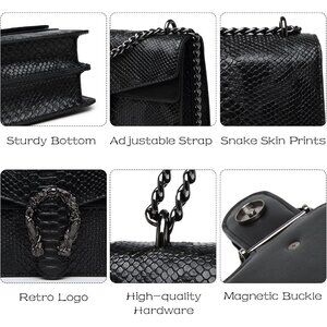 Snake Print Leather Crossbody Bag for Women with Chain Strap and Clutch Style