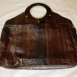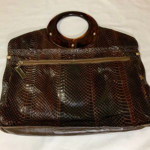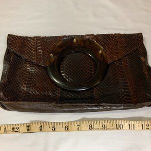 This handbag/clutch can be carried by the cutout top handle or folded and held as a clutch. By La Belle. Made in Montreal. Condition: wear and tear damages as a result of wear/aging.