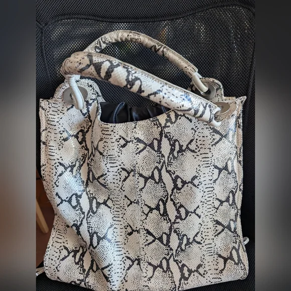 Stylish handbag with a snakeskin pattern. Features a sleek design and sturdy handle.