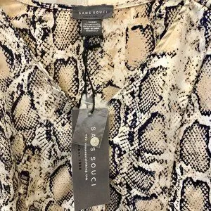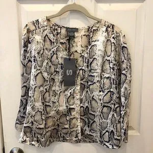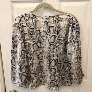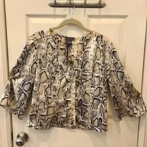 Snakeskin pattern blouse with 3/4 length flared sleeves with tags. Size large but runs a bit small.