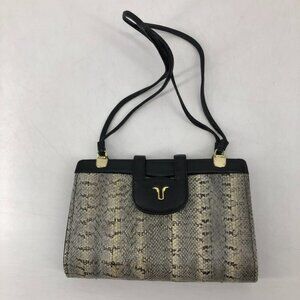 Snakeskin top clasp shoulder bag tan black