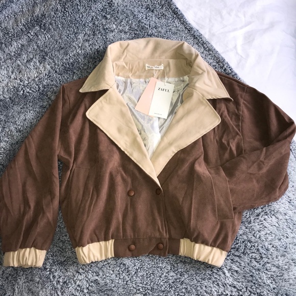 Brown suede slightly cropped jacket with 4 button closure Reason for sale: never got around to wearing it!