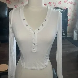 Tulip V-neck snap button top from garage. Please refer to second photo, one tiny pull on the top.