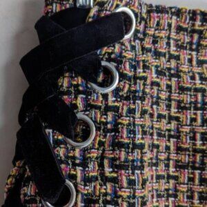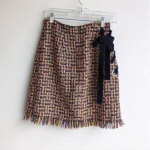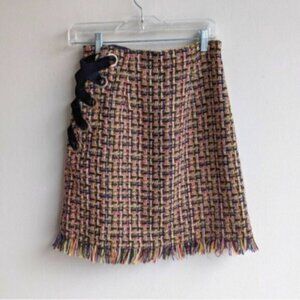 Snidel neon metallic multicoloured gold tweed mini skirt with fringe trim