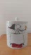 White ceramic jar featuring Snoopy & Woodstock in a festive scene. Perfect for holiday decor to store tea, sugar, candy, or even as an organizational unit for small knick knacks.