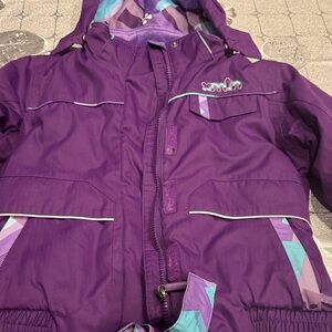 Keep your child warm and stylish with this vibrant purple jacket. Perfect for chilly days, it features a cozy hood and playful design.