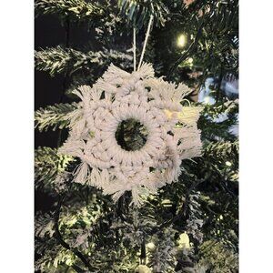 Snowflake Ornaments White Christmas Tree Decorations Handmade Macrame