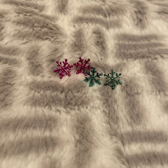Teal and pink snowflake earrings