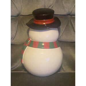 Celebrate the holiday season with this charming Snowman Cookie Jar featuring a festive top hat design. Perfect for storing your favorite cookies or treats, this traditional style jar will add a touch of whimsy to your kitchen decor. The multicolor detailing and holiday theme make it a delightful addition to your collection of kitchen storage essentials and collectibles.