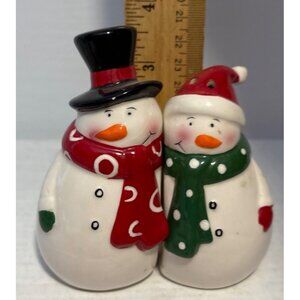 Snowman Couple Arm in Arm Ceramic Salt & Pepper Shakers 4" Holiday Winter Decor