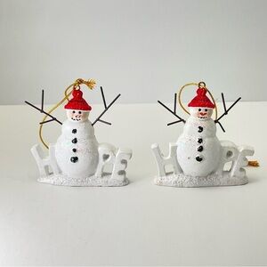 Snowman Hope Ornament Signed Stouffer 2008 Pair