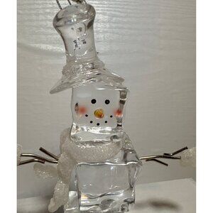 Snowman Ice Cube Acrylic Ornament Clear Frosted Accents 6" Winter Decor