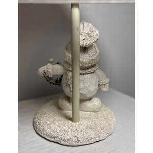 This snowman-themed table lamp adds a whimsical touch to any winter decor, featuring a snowflake-detailed shade and glitter accents for a festive ambiance.
