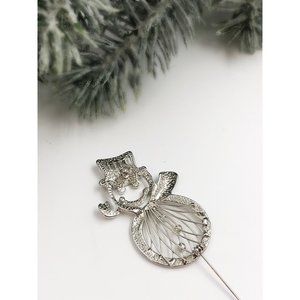 Cute Lot of Three Vintage Snowman Brooches. Largest one is silver tone with AB stones in hat, eyes and belly. An open design of Snowman smoking a pipe and wearing a top hat. Measures 2.5" in height by 1.5" in width. Smaller Silver Tone Snowman wearing a toque with AB stone trim. Measures 1 3/4" in length by 1" in width. Marked "TC". The Gold tone brooch done in an open design with sparkly eyes, black enamel trim on top hat and a red glitter enamel scarf, marked "Ali" on back of scarf. All in good condition with working roll over clasps. No returns or exchanges.