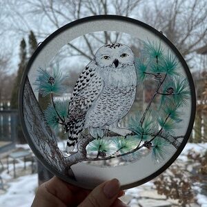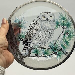 Snowy Winter Owl Pine Branch Sun Catcher