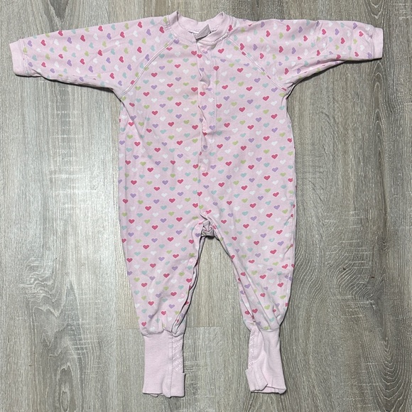 Adorable pink one piece with a charming heart pattern, perfect for your little one. Soft and comfortable for all-day wear.