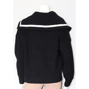 So Fen Womens Medium Black Pullover Sweater Split Shawl Collar Ribbed Knit Shirt