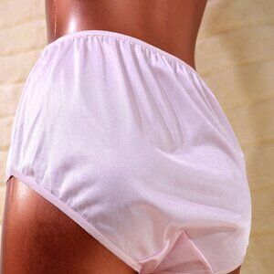 Gorgeous, long-discontinued So-En panties, manufactured by Josafina in the Philippines. They're sewn from the most amazingly soft nylon, and they feature the softest double nylon gussets. These are in a pretty baby pink. New with tags. Size XL 8, they measure from 24 to 40 inches stretched at the waist. New with tags. Ask about other colors as well.