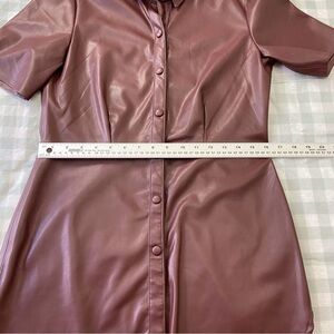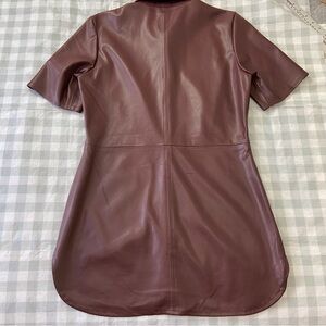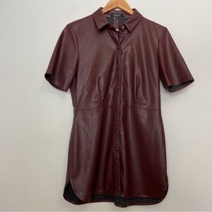 Item keywords: Soaked dress, faux leather mini dress, contemporary western style, brown short sleeve dress, collared button dress, edgy western dress, cowboy chic outfit, small leather look dress, modern western wear, pre-owned Soaked dress.